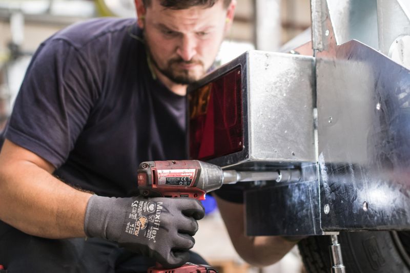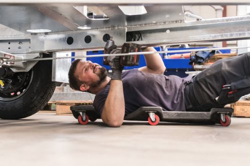 Unsere Fahrgestelle und Bauteile werden durch geprüfte Schweißer gefertigt. Durch die Fertigung im eigenen Hause können wir jederzeit alle Fertigungsschritte überwachen und prüfen um gleichbleibende hohe Qualität zu erreichen.
